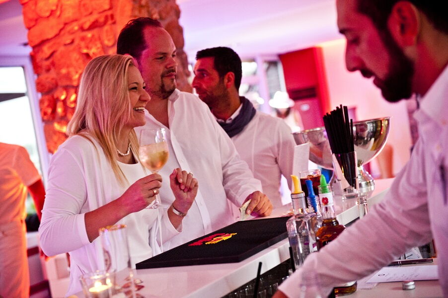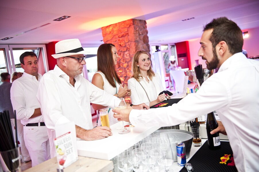 Bei diesem High Class Event geht es vor allem um ein kommunikatives Ambiente, den fantastischen Ausblick, guten Wein und Spaß auf der Tanzfläche. Hier wird nicht am Tisch im Sitzen gefeiert. Es gibt keine festen Sitzplätze oder Tische, Reservierungen bei größeren Gruppen gerne auf Anfrage. Reichlich Sitzmöglichkeiten Indoor & Outdoor sind vorhanden, die jeder Gast frei nutzen kann. Eine Sitzplatzgarantie gibt es nicht.